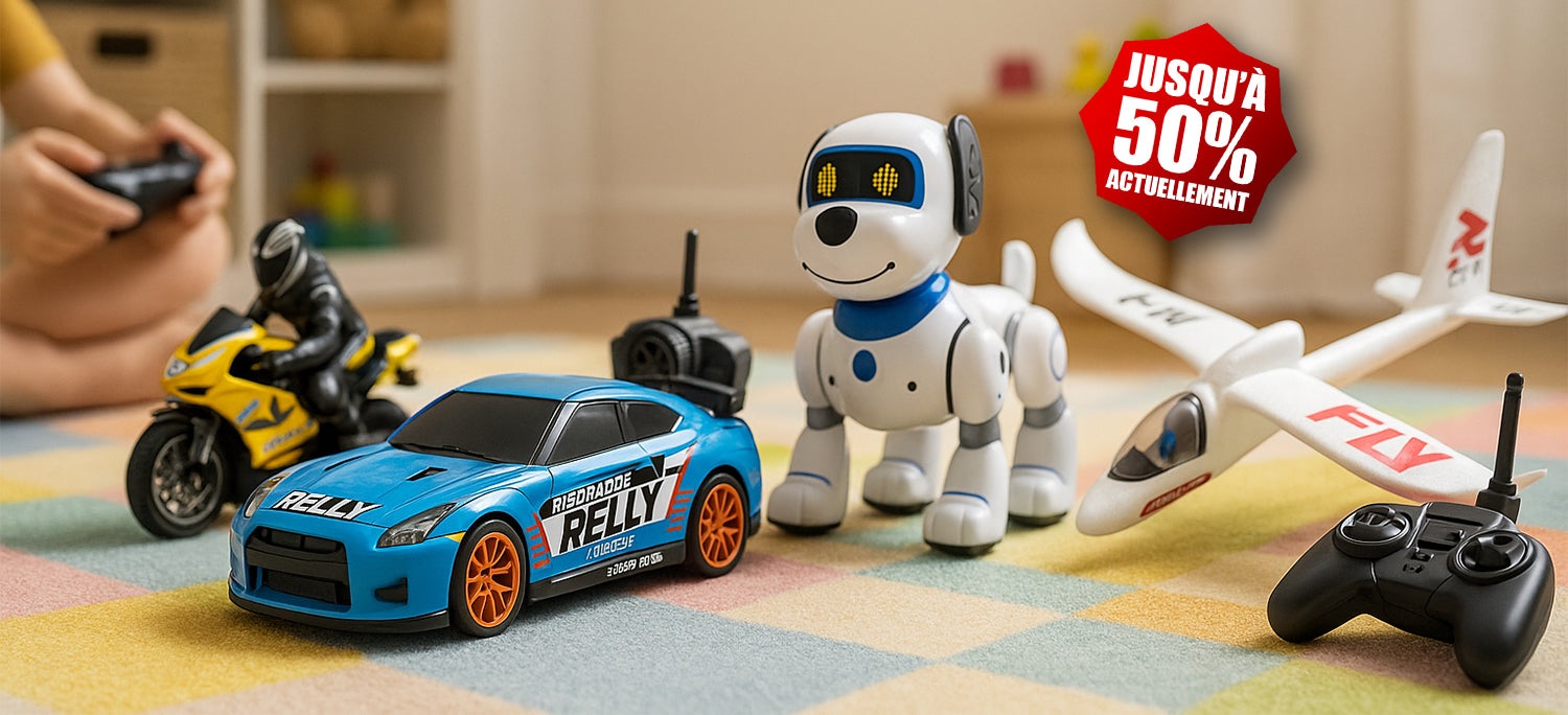 Découvrir nos bébêtesNotre boutique propose un univers complet : voiture de course, rally RC, camion benne, quad, moto de course, hélicoptère radiocommandé FPV, planeur RC, drone miniature, mais aussi chien télécommandé, poupées interactives ou encore toys transformables.